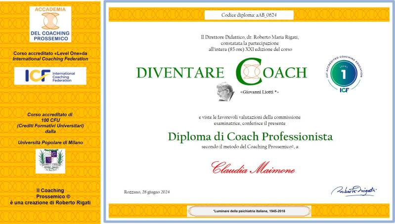 Diploma coach professionista "Diventare coach-Accademia del Coaching Prossemico”